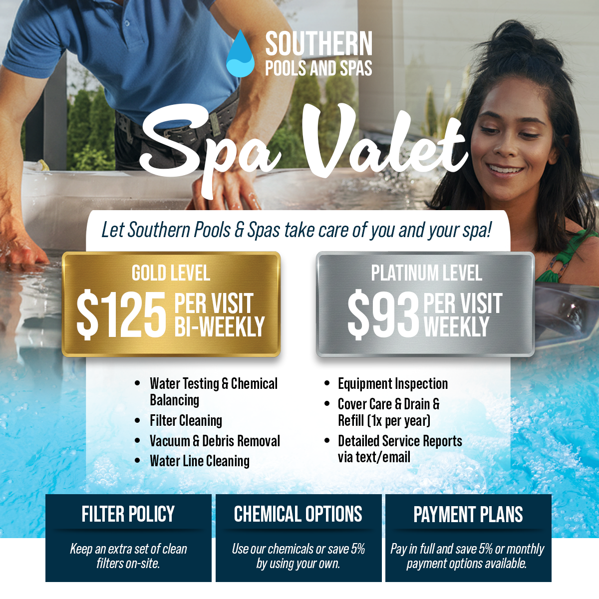 Spa Bi-Weekly Maintenance – $125/visit (26 service visits per year)